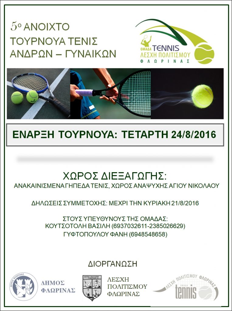 5o ΑΝΟΙΧΤΟ ΤΟΥΡΝΟΥΑ ΤΕΝΙΣ ΛΕΣΧΗ ΠΟΛΙΤΙΣΜΟΥ ΦΛΩΡΙΝΑΣ – ΔΗΜΟΣ ΦΛΩΡΙΝΑΣ.