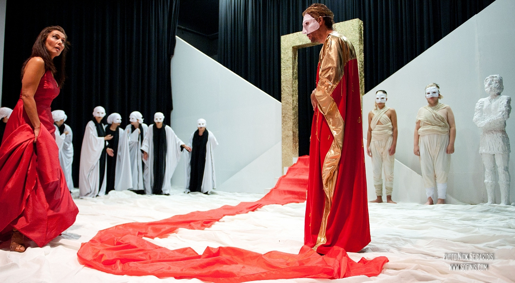 Η παράσταση έμεινε πιστή στην σχεδόν ξεχασμένη τις τελευταίες δεκαετίες αυθεντική σκηνοθετική απόδοση, μακριά από φτηνούς ή ακριβούς εντυπωσιασμούς, που με την νεωτερικότητα που τους διακρίνει και την πρόθεση της «νέας ανάγνωσης» σπάνια αποφεύγουν την απώθηση του θεατή από το ουσιαστικό δρώμενο και το πανάρχαιο ηθικό δίλημμα που προβάλλει ο τραγωδός, «την ύβριν και την μήνιν, την άτη και την τίσιν», με λίγα λόγια τα στάδια και ψυχολογικά επίπεδα που οι άμοιροι πρωταγωνιστές –θύματα συνήθως της μοίρας, της πατρογονικής κατάρας ή της δικής τους οίησης- παθαίνουν, με την πλήρη έννοια του όρου πάθος, αφού η αρχαία τραγωδία ανθρώπων πάθη ιστορεί. Η εμμονή στην παραδοσιακή απόδοση δικαίωσε τον σκηνοθέτη που έντυσε τους πρωταγωνιστές αλλά και (ιδίως) τον χορό με μανδύες, χιτώνες αλλά και μάσκες.