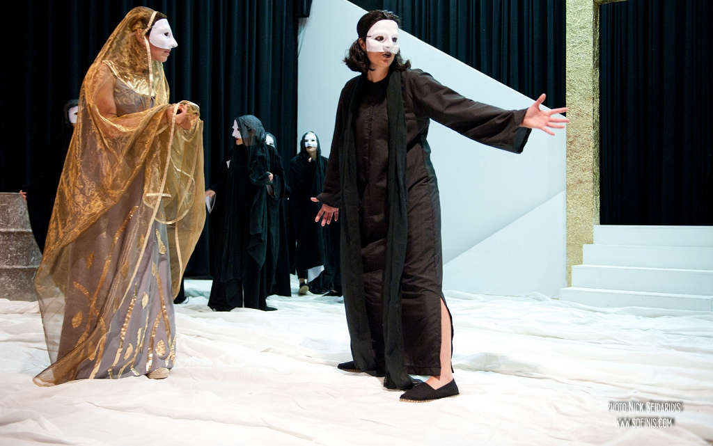 Η Ηλέκτρα και η Χρυσόθεμις ομοιότυπα πρόσωπα Αντιγόνης-Ισμήνης δίνουν το δικό τους αγώνα λόγου.