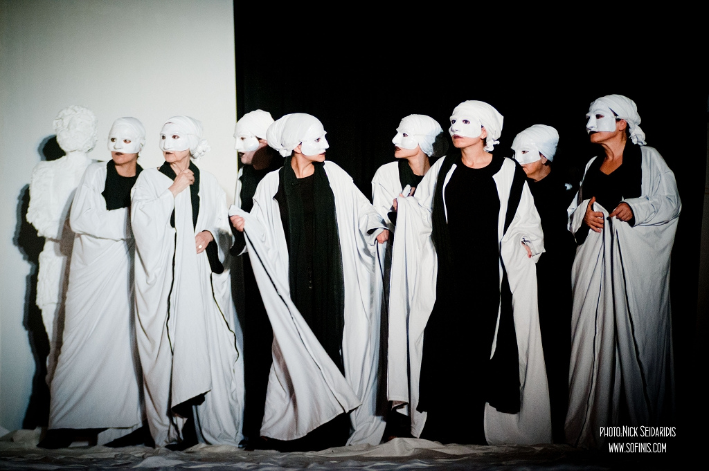 Τίποτε από αυτά όμως δεν θα είχαν αξία εάν δεν είχε διδαχθεί και ερμηνευτεί με ζηλευτή επάρκεια η κίνηση του χορού, μια κίνηση που απέδιδε ανάλογα με την πορεία της παράστασης συναίσθημα, φόβο, ανησυχία, ενθουσιασμό, απόγνωση. Κανείς από τον χορό δεν υστέρησε και όλες μαζί απέδωσαν ένα εξαιρετικά σφικτό και δεμένο σύνολο. Τα ονόματά τους:. Σοφία Ζευγώλη, Χριστιάνα Τσουμίτα, Γιώτα Καναβού, Ολυμπία Χατζηχρήστου, Αθηνά Μανουκάκη, Ευαγγελία Παλικρούση, Πένυ Σωτηροπούλου, Κατερίνα Κετσίδου, Ολγα Μαντινιώτη. Ειδική αναφορά αξίζει στην κορυφαία του χορού Άννα Μπατμά, αφού με την ερμηνεία της και την σταθερότητά της και μια απρόσμενη καθαρότητα στην εκφορά του λόγου, οδήγησε με στιβαρό χέρι τον χορό, ανεδεικνυόμενη σε πραγματικά κορυφαία του.