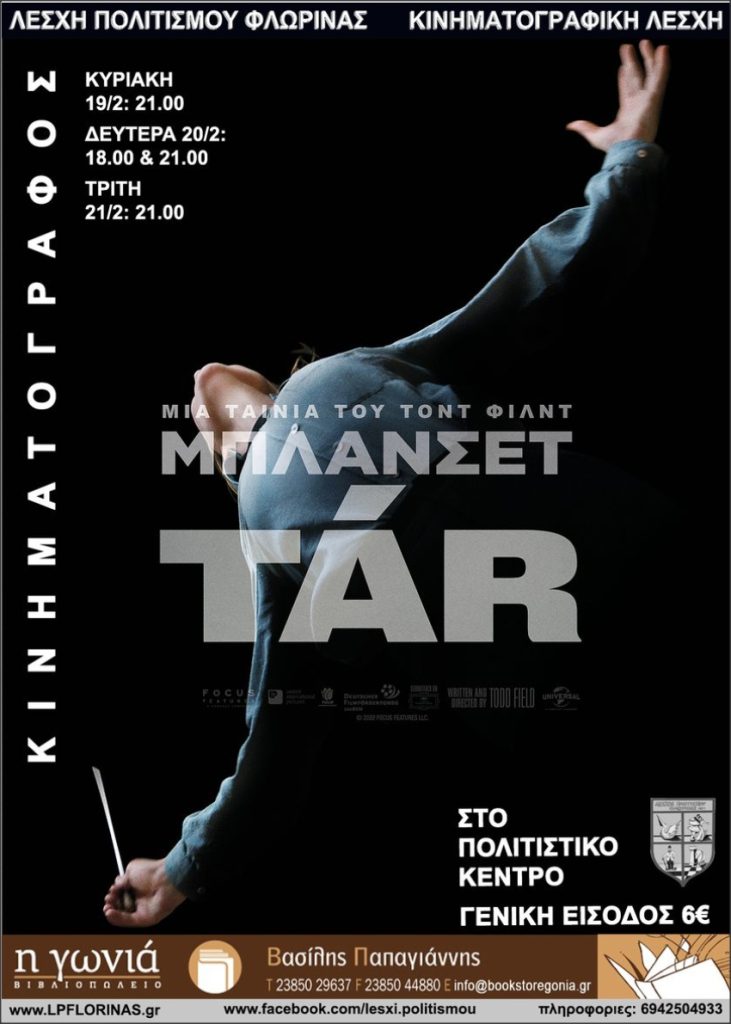 Από τον σεναριογράφο, παραγωγό και σκηνοθέτη Τοντ Φιλντ, έρχεται το TAR, με την βραβευμένη με Όσκαρ, Κέιτ Μπλάνσετ στον ρόλο της Λύδια Ταρ, μιας πρωτοποριακής μαέστρου που διευθύνει μια μεγάλη γερμανική ορχήστρα. Η Ταρ βρίσκεται στο απόγειο της καριέρας της, καθώς προετοιμάζει τόσο την παρουσίαση ενός βιβλίου όσο και την πολυαναμενόμενη ζωντανή εκτέλεση της Πέμπτης Συμφωνίας του Μάλερ. Η ζωή της θα αρχίσει να παίρνει μια απρόσμενα δραματική τροπή. Πρόκειται για μια σπουδή πάνω στη μεταβαλλόμενη φύση της εξουσίας, στον αντίκτυπό της στην κοινωνία και στην ανθεκτικότητα της απέναντι στον σύγχρονο κόσμο.