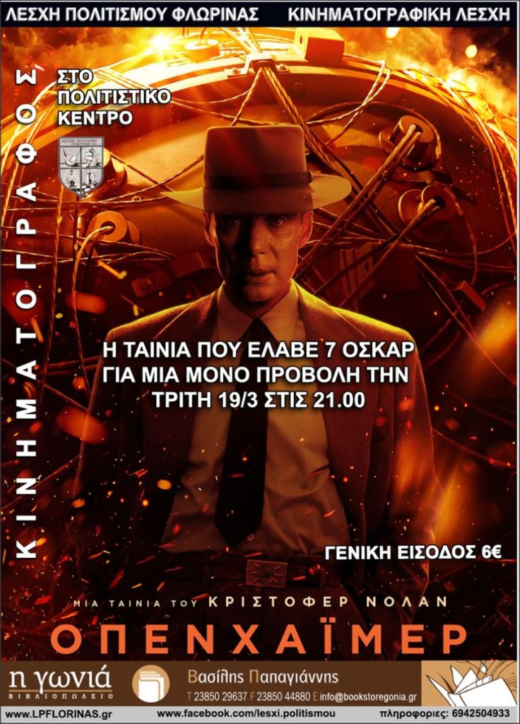 Αμέσως μετά το τριήμερο της Καθαράς Δευτέρας προγραμματίσαμε μια ακόμη προβολή της καλύτερης ταινίας της χρονιάς, της ταινίας “ΟΠΕΝΧΑΪΜΕΡ” του Κρίστοφερ Νόλαν που έλαβε 9 όσκαρ!