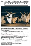 ΧΟΡΟΘΕΑΤΡΟ ΛΕΣΧΗΣ ΠΟΛΙΤΙΣΜΟΥ ΦΛΩΡΙΝΑΣ Μαθήματα: Μπαλέτου – Σύγχρονου Χορού – Χορογραφίες Περίοδος: Σεπτέμβριος 2016 – Μάιος 2017 Λειτουργούν Τμήματα: Νηπιαγωγείου, Δημοτικού, Γυμνασίου, Λυκείου, Ενηλίκων, κάθε Παρασκευή Σάββατο και Κυριακή στο γυμναστήριο του 6ου Δημοτικού Σχολείου Φλώρινας (πρώην 1ου Πειραματικού). Εγγραφές: από Παρασκευή 30 Σεπτεμβρίου και κάθε Παρασκευή 5-7μ.μ. (για παιδιά 4-8 ετών) και Σάββατο 1 […]